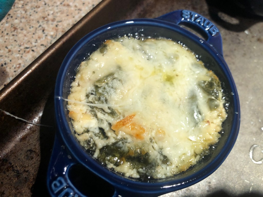 Put the remaining cheese on top of your dish, or if you’re using individual dishes, like I did with my Staub Cocott set, divide the remaining cheese evenly.